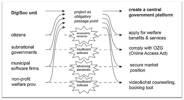 Weltweit transformieren Staaten ihre öffentlichen Verwaltungen ins digitale Zeitalter und verfolgen dabei zunehmend das Leitbild Government as a Platform (GaaP). Unser soeben erschienener Artikel untersucht die Umsetzung der deutschen Verwaltungsdigitalisierung am Fall der Sozialplattform, die mehr als nur technische Neuerungen für den deutschen Sozialstaat verspricht. Der Katalysator für die Entwicklung dieser öffentlichen Plattform war das deutsche Online-Zugangs-Gesetz (OZG), das einen Wendepunkt in der deutschen E-Government Strategie markiert. Unter Verwendung des analytischen Werkzeugs der Akteur-Netzwerk-Theorie (ANT) verfolgen wir die sozio-technischen Prozesse, die die Entwicklung dieser Plattform prägen. Dabei werden im augenscheinlich technischen Umsetzungsprojekt verschiedene Formen von „Politik jenseits von Parlamenten“ sichtbar.