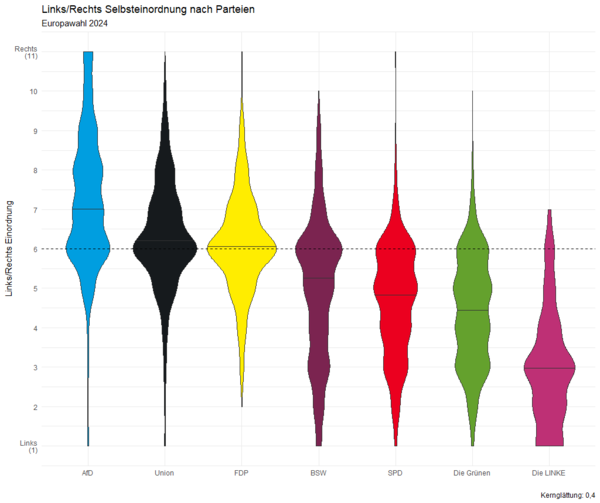 Tabelle 1: Durchschnittliche links/rechts Selbstverortung nach Wahlentscheidung bei der Europawahl 2024