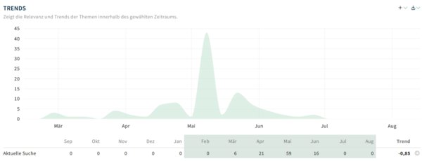Millionen Dokumente können mit einfachen oder komplexen Ansätzen durchsucht werden, wobei der Einsatz semantischer Technologien hier zahlreiche Mehrwerte bietet. Wie bei anderen Datenbanken auch, unterstützen diverse Filteroptionen eine zielgerichtete Recherche. Polit-X ermöglicht es Ihnen, komplexe Daten in übersichtlichen Grafiken und Diagrammen darzustellen, um Ihre Analysen zu unterstützen und Ihre Ergebnisse visuell ansprechend zu präsentieren. Exemplarisch veranschaulicht dies die abgebildete Datenvisualisierung in Abbildung 1.
