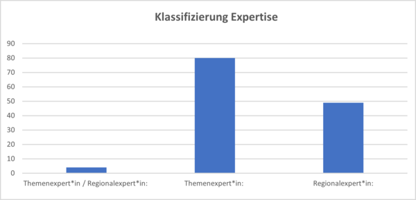 Unsere Analyse zeigt auch die Grenzen beim Wissensaustausch. Afghanische Expert*innen fehlen weitgehend; nur zwei der 133 Personen sind in Afghanistan geboren. Das ist bemerkenswert, da die Beziehungen zwischen Deutschland und Afghanistan lange zurückreichen und die afghanische Diaspora in Deutschland groß ist. Wir stellten außerdem fest, dass detailliertes Wissen über Afghanistan nicht hoch geschätzt wird. Das zeigt sich an verschiedenen Faktoren. In Deutschland gibt es deutlich mehr thematische Expert*innen als Länder-/Regionalexpert*innen, also mehr solche, die sich allgemein mit Sicherheitspolitik beschäftigen und Afghanistan als ein Beispiel von vielen betrachten, als solche, die das Land tief kennen. (im Verhältnis 3:2, siehe Abbildung 2).