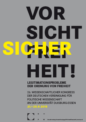 Vom 21. bis 25. September 2015 fand der 26. wissenschaftliche Kongress der DVPW an der Universität Duisburg-Essen in Duisburg zum Thema „Vorsicht Sicherheit! Legitimationsprobleme der Ordnung von Freiheit“ statt.